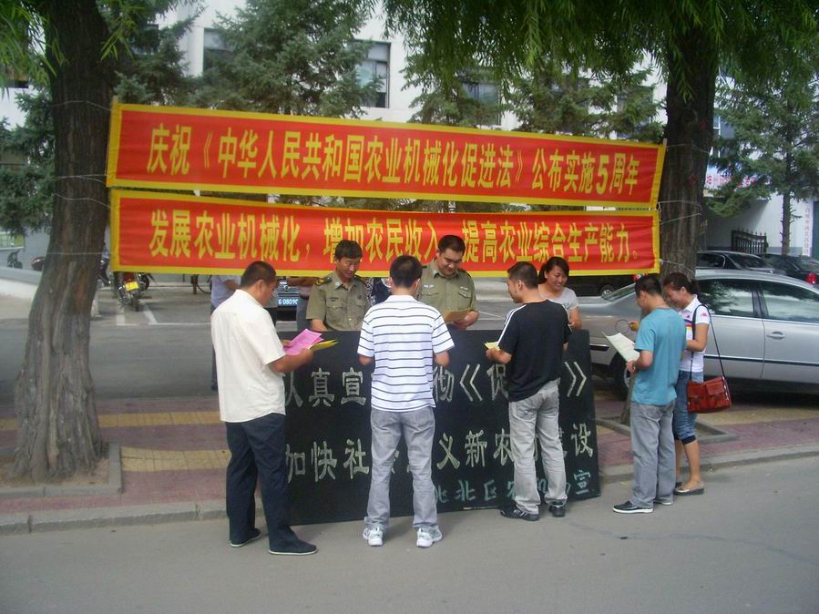 今年是《中华人民共和国农业机械化促进法》公布实施五周年,为进一步推动《促进法》深入贯彻实施,促进我省农业机械化又好又快发展,按照农业部及省里的有关文件要求,7月25日,白城市农委及洮北区农机管理总站联合进行了《中华人民共和国农业机械化促进法》公布实施五周年宣传庆祝活动。在此期间,还将通过调查问卷,召开座谈会等多形式进行纪念庆祝活动。 |