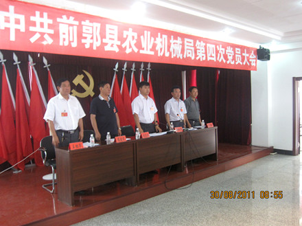 在前郭县委的正确领导下,在县委组织部的指导下,通过农机局广大党员干部的密切配合和积极参与,前郭县农机局于8月30日完成了党委换届选举工作。经农机局第三届党委研究,并报请中共前郭县委组织部批准,“中共前郭县农业机械局第四次党员大会”于8月30日在县政务大厅会议室隆重召开。农机系统共82名党员参加了此次大会。