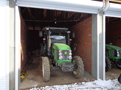 一台拖拉机数万元,白天干活,夜里露宿,风吹、雨淋、日晒,没少出力。要想使它用起来随手,首先要爱护它、关心它,给它建个库房是其应享受的最基本待遇。  “突、突、突、突”,拖拉机欢快着驶入自己的“新房”,有了自己的窝,可以暖暖和和过冬了。 |