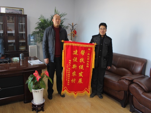 2014年,敦化市农机局负责帮扶黑石乡治安村的新农村建设工作,农机局领导高度重视,多次带队前去村里调研走访,帮助解决村民生活难题。调研中发现,村里没有路灯,村民晚间出行十分不便。为此,农机局筹集资金11万余元,为治安村安装了太阳能路灯,提高了村民的生活质量。现在,治安村夜晚灯光明亮,村容整洁,村民晚饭后有的在马路上聊天散步,有的还要在小广场跳上一场健身舞,村里呈现着安乐祥和的氛围,村民一致点赞。2015年2月2日,治安村村委会派人向农机局送来了锦旗,上面写着“帮扶促发展 建设新农村”,对农机局的大力支持表示感谢。