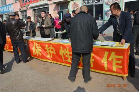 在大集上,来自德惠市农机总站的工作人员耐心地为农民解答关于保护性耕作技术的相关政策问题,并向他们发放《保护性耕作技术》、《农业种植技术》等相关农业种植方面的技术资料,宣传保护性耕作技术及农机知识。大集散去后,农机总站的同志又先后走进五台乡狼洞村和太平村等3 家农机专业合作社,进行科普知识宣传。