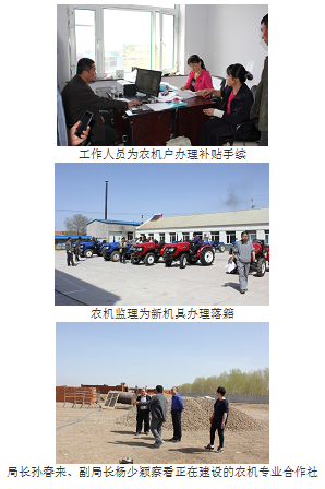 4月26日,洮南市农机局局长孙春来、副局长杨少颖带领业务科和监理站工作人员成立便民服务小组,利用双休日时间,深入到北部乡镇,对新购置的补贴机具进行验车、照相、安装牌照等一条龙服务。并实地察看了正在建设中的农机专业合作社。深受农民的一致好评。