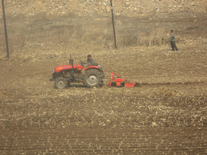 走近田间,便能看见拖拉机在来回穿梭,从前的老黄牛耕田被农业机械取代,一块田地用黄牛耕作需要大半天,如今用农业机械仅需一两个小时。拖拉机手轻便、灵活、熟练地操作着农机具,黄土地经拖拉机精耕细作后,换了一身春装,笔直、均匀、平整的地垄格外显眼。雇主在田间悠闲地检验作业质量,脸上堆满了笑容。 |