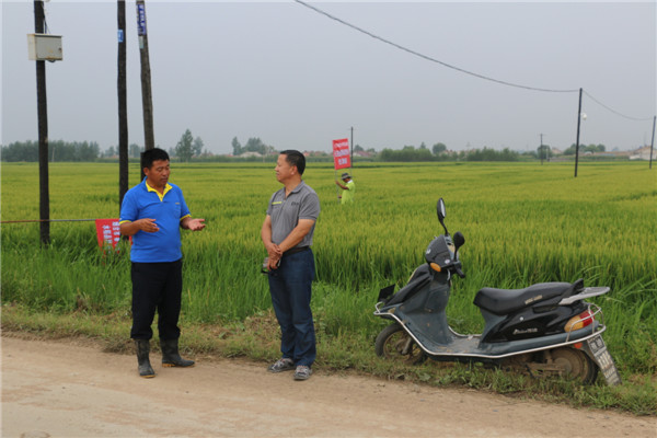 我们在他们的引导下,来到田间地头查看了水稻长势情况,观看了九月丰家庭农场的水稻品种展示田,也亲眼见到了有机米种植基地合兴家庭农场鱼稻共生的美好场面。总的来看,水稻长得都很好,病虫害防治及时,田间管理都很科学。