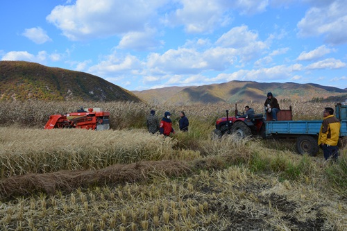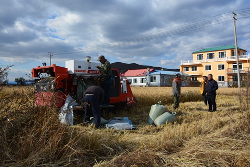 | 延吉市推广培训中心技术人员下乡指导水稻收割 |
