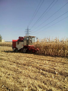 10月8日随着秋收时节的到来,伊通镇河北村的农机户用两行收割机在收割玉米,大片玉米地里,已不见以往农民费劲的扒苞米忙碌景象,看到更多的是一台台玉米联合收割机在田地里忙碌为农民节省了大量的人力物力。