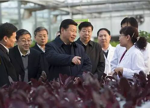 图为:2013年11月27日下午,习近平在山东省农业科学院智能化温室了解农业科技创新情况。