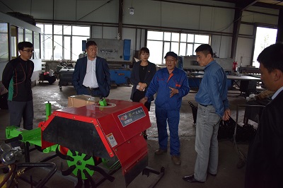 调研组首先来到吉林省珲春边境经济合作区12号小区的珲春创一实业有限公司进行调研,参观了该公司经销的从韩国进口经销的组装筑埂设备—350型水田筑埂机,水田筑埂是水稻生产过程中最为重要的环节,目前我国农村的水田埂主要还是靠人工修筑,由于人工费太贵,长年失修、埂矮、耗子洞,蝲蝲蛄洞渗漏、塌陷、存水困难等现象非常严重,直接影响着水稻正常的生产。缺少高质量的筑埂机械,使水稻全程机械化的运用大打折扣。传统的人工筑埂作业效率低、埂质差、费用高。1ZG-350型筑埂机是采用韩国最先进的机械筑埂技术,可以覆土、成型、压实在一次作业中完成。采用该产品筑埂作业,筑出的水田埂,埂实、线直、表面光滑,抗水渗泡,作业费用低,效率高。
